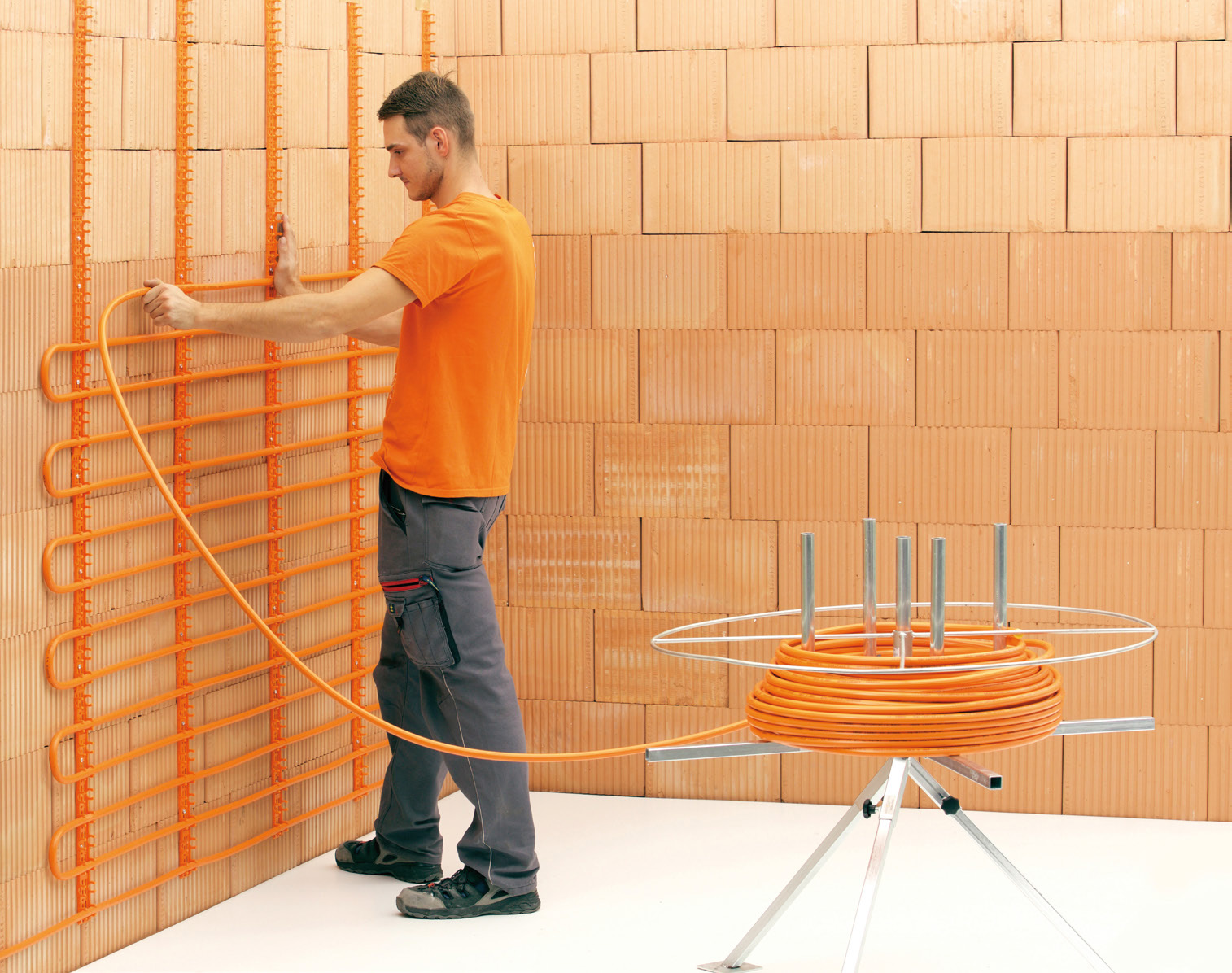 Bij een afgiftesysteem als muurverwarming heb je een verdeler nodig. Het systeem werkt namelijk op lagere temperaturen (= energiebesparing). Sluit het daarom niet rechtstreeks aan op een bestaand verwarmingssysteem. Een verwarmingssysteem met radiatoren werkt met hoge temperaturen die niet geschikt zijn voor wandverwarming. Gebruik altijd een verdeler om de warmte over de verschillende muuroppervlakken (zones of groepen) te verdelen. Of je een verdeler nodig hebt met pomp of zonder hangt af van de situatie.